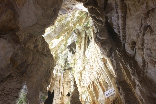 他と比べてヘリクタイトという曲がった形の鍾乳石が多く、洞内もライトアップしているのでより幻想的な世界に入りこむことができます。ペットを連れて入場できることも魅力の一つです。
