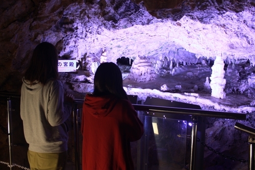 中萩さん:鍾乳洞は往復すると約800mとなっており、大体3-40分で見学できます。第1洞は平坦で、第2、3洞は少し起伏があります。道中は舗装はされているので、どのような靴でも楽しめると思うのですが、全季節を通じて11度くらいの気温なのでそれを踏まえた服装をしていただけると良いでしょう。