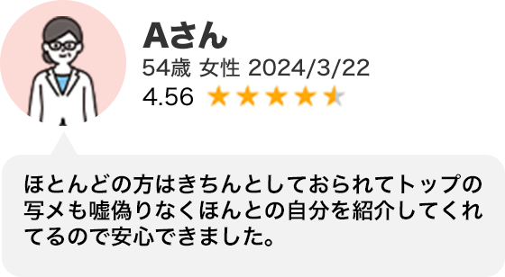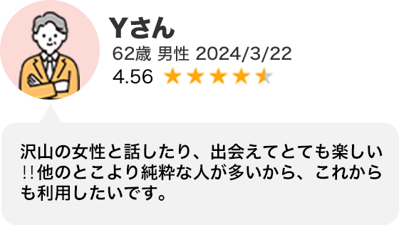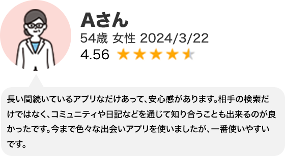 - ・会員数が多いので、40代以上の男女に出会える